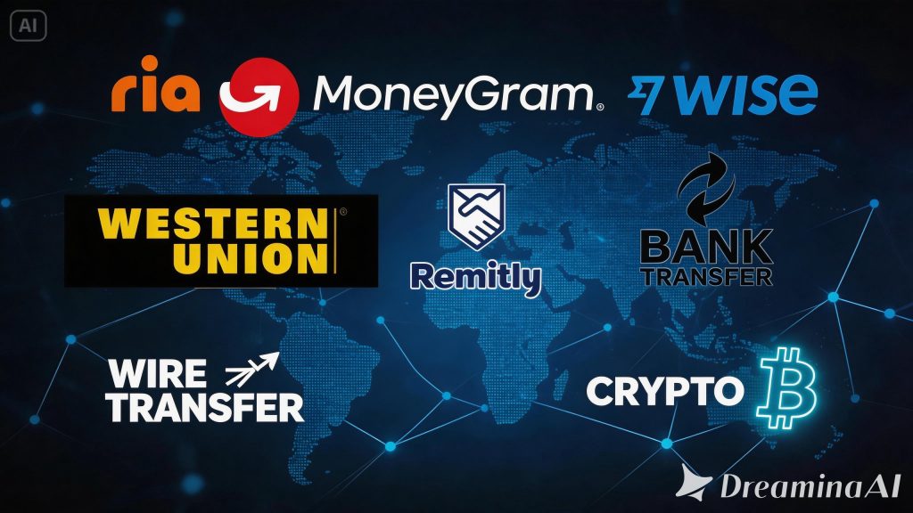 Payment making through Ria, Remitly, Money Gram, Bank Transfer, and Western Union with the exchange rate listed by the local bank.