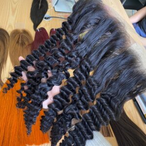 ADVANCES: 100% Human hair, 100% virgin Remy hair. All cuticles run in the same direction, with no tangle, and no shedding. Collect from healthy donors, strong hair, and long-lasting. No mix of synthetic hair, no animal hair. Soft, smooth, silky, and shiny. No chemicals and no harmful to health. Good smell, and is very clean, with no nits.